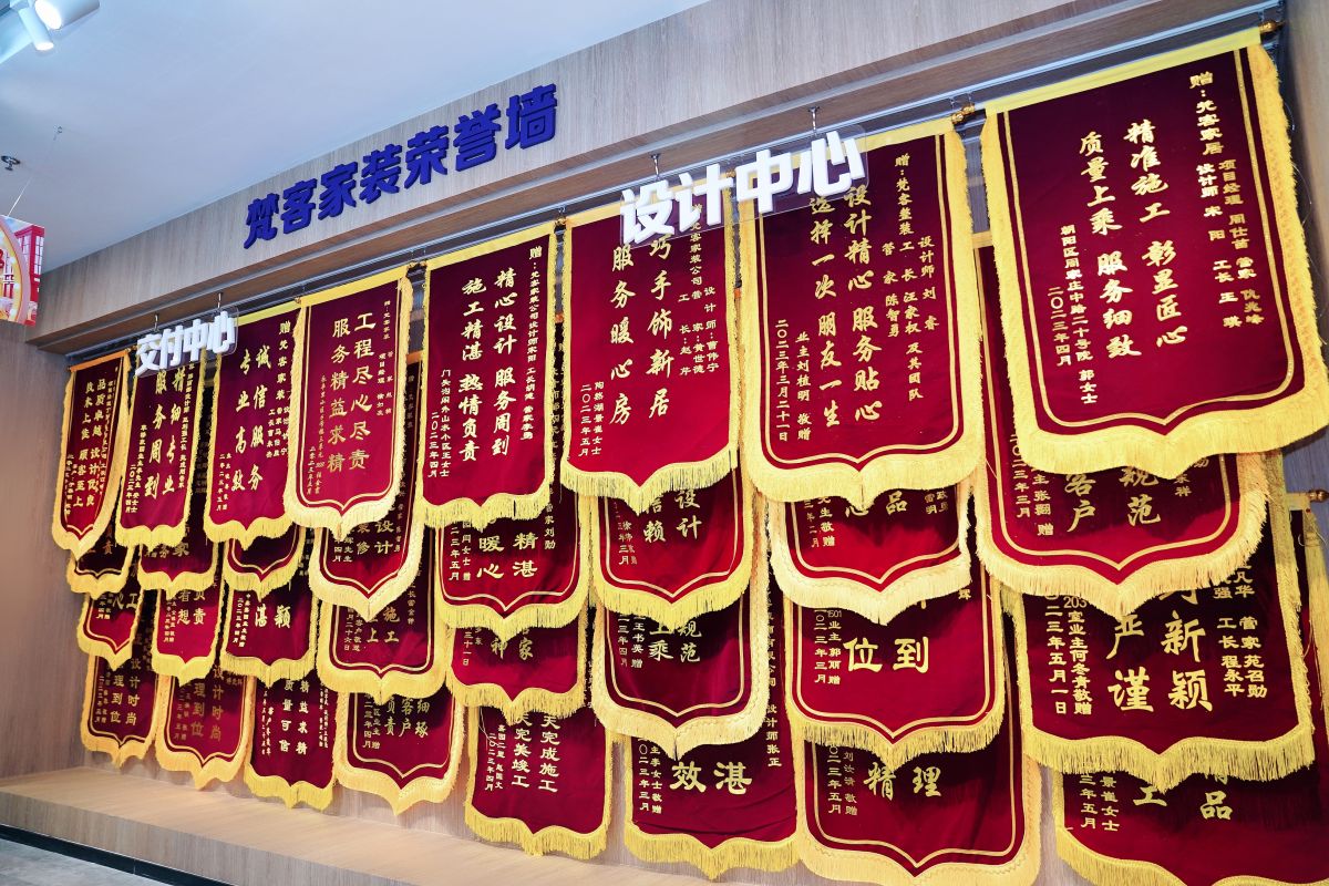 已經裝修完的業主朋友,也紛紛在這一天送上錦旗,對梵客的設計、施工、服務大加讚賞,這更激勵著梵客人腳踏實、盡心盡職,以匠心設計、精湛施工服務好每位客戶。