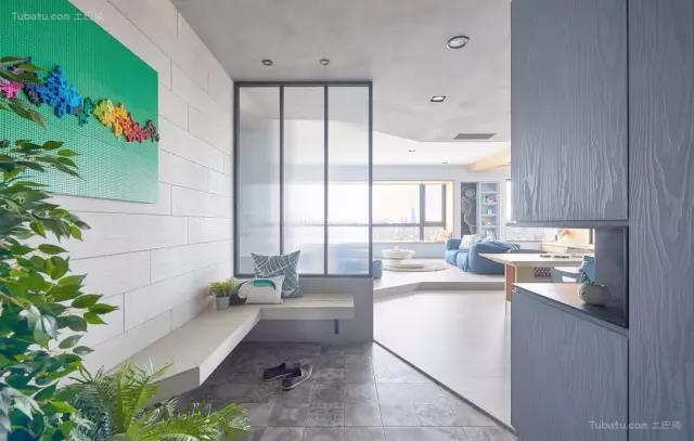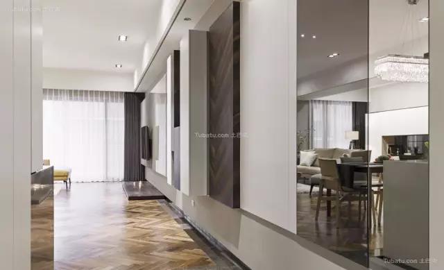 指通過地麵、牆麵、頂麵的材質、顏色的差異化設計來取得“視覺化玄關”的效果。