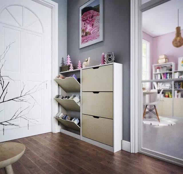 收納裝飾作用,不影響出入,若居室小,用低櫃、鞋櫃等。