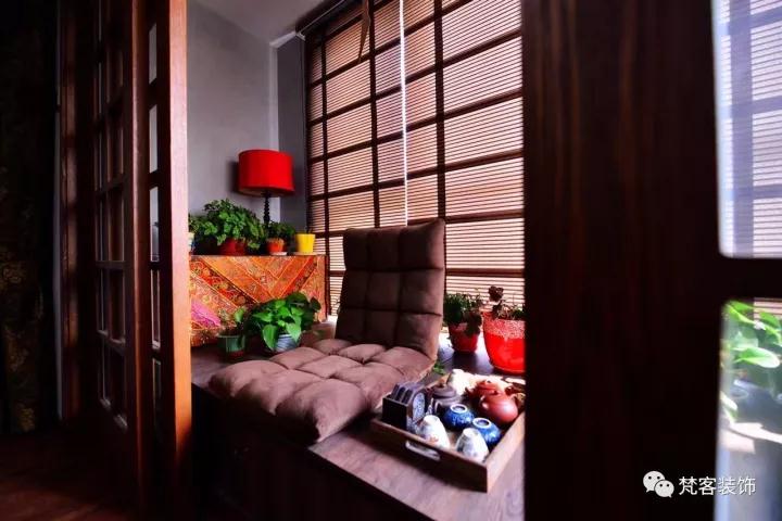 陽台榻榻米也是一得力製作,滿足了夫妻二人平時喝茶、做手工的興趣愛好,還兼顧收納儲蓄功能。推拉門關上,就是一個獨立的私享空間。