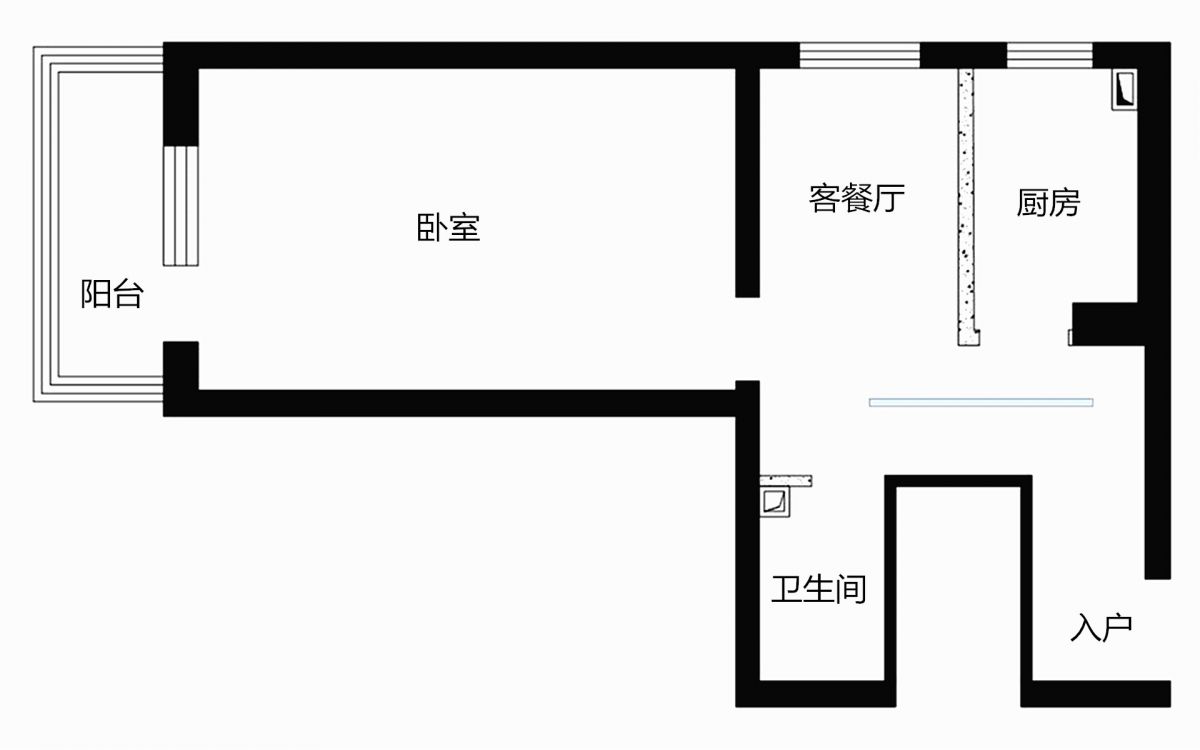 改造後,滿足了業主想要的所有功能區,空間利用率大大提升。從原始平麵圖 ↑ 和平麵布置圖 ↓ 的對比,即可看出變化。