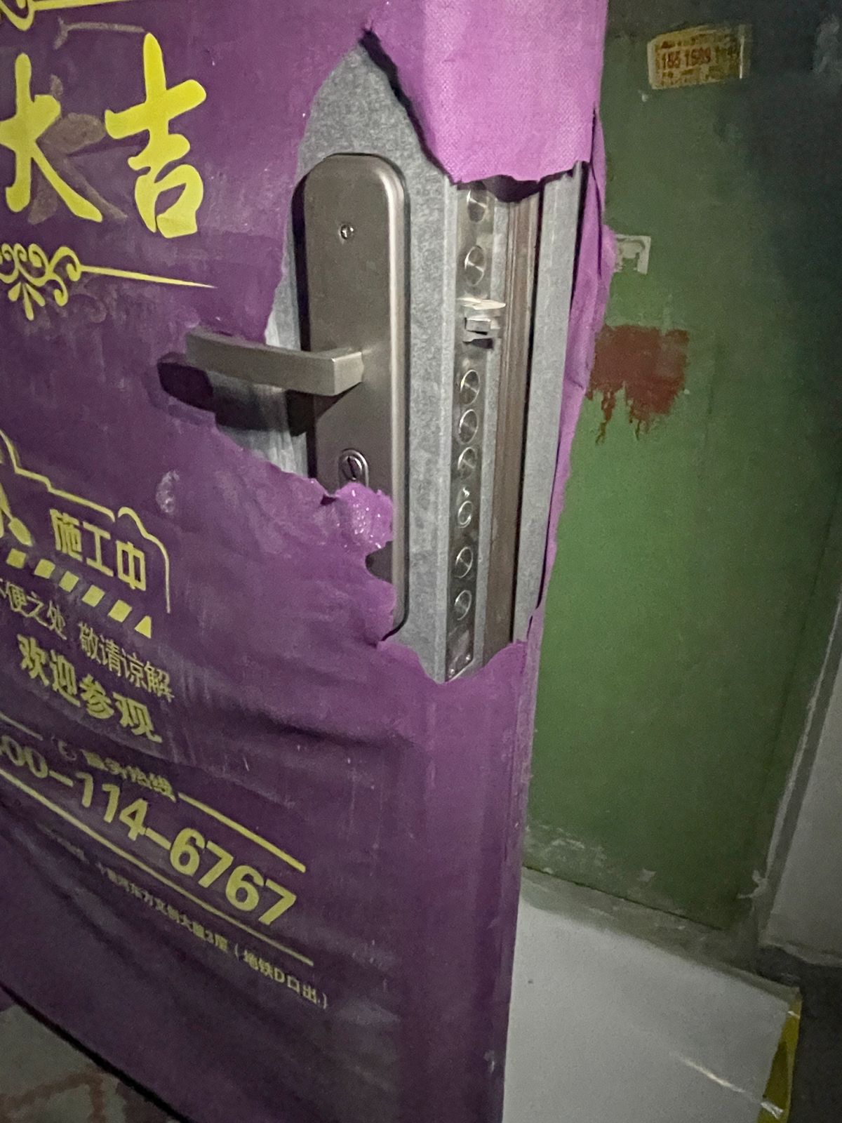入ru戶hu大da門men,就jiu能neng看kan出chu裝zhuang修xiu的de用yong心xin程cheng度du。從cong進jin場chang開kai始shi,業ye主zhu換huan的de新xin防fang盜dao門men就jiu要yao保bao護hu起qi來lai,防fang止zhi搬ban瓷ci磚zhuan等deng硬ying物wu時shi,磕ke碰peng到dao門men導dao致zhi掉diao漆qi。整zheng個ge裝zhuang修xiu竣jun工gong後hou,保bao護hu才cai會hui撤che場chang。
