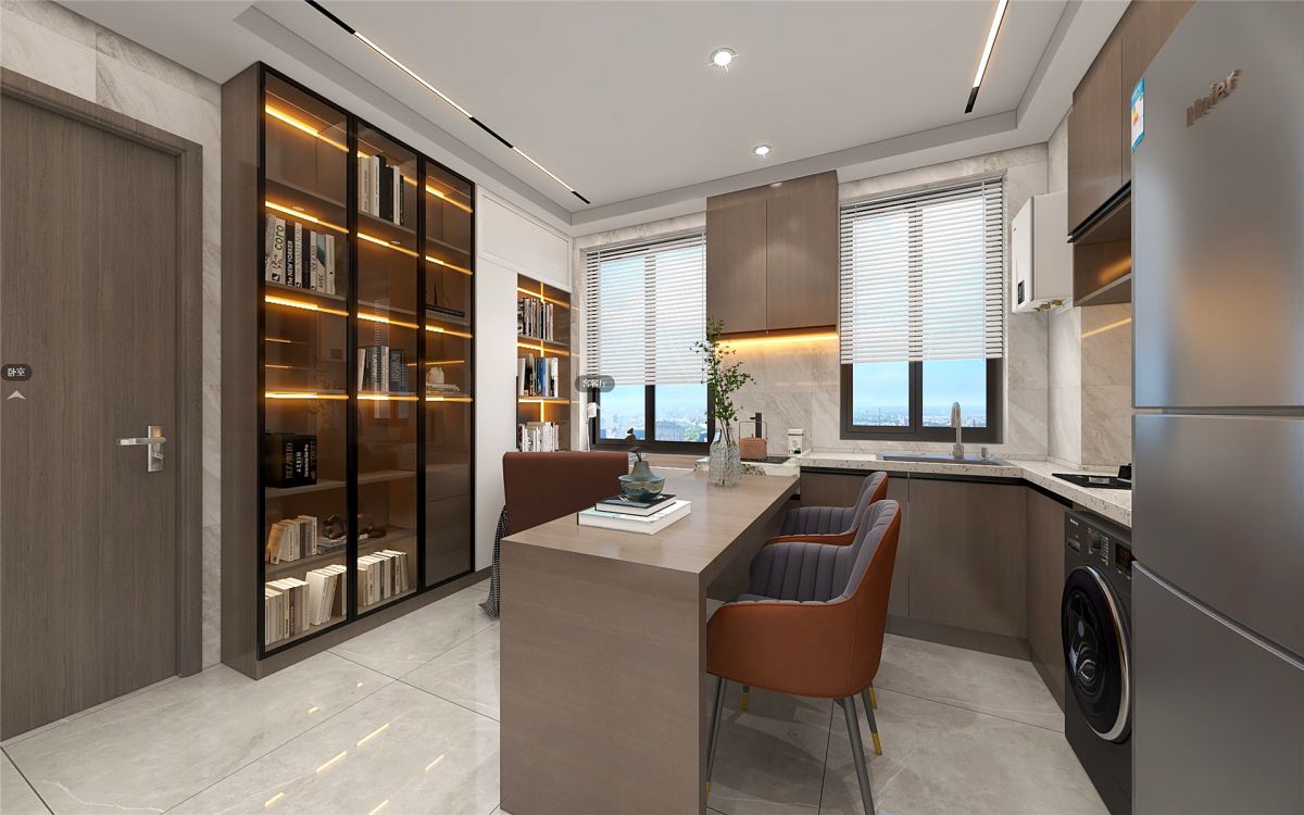 ↓ 餐廳+廚房+書房效果圖展示