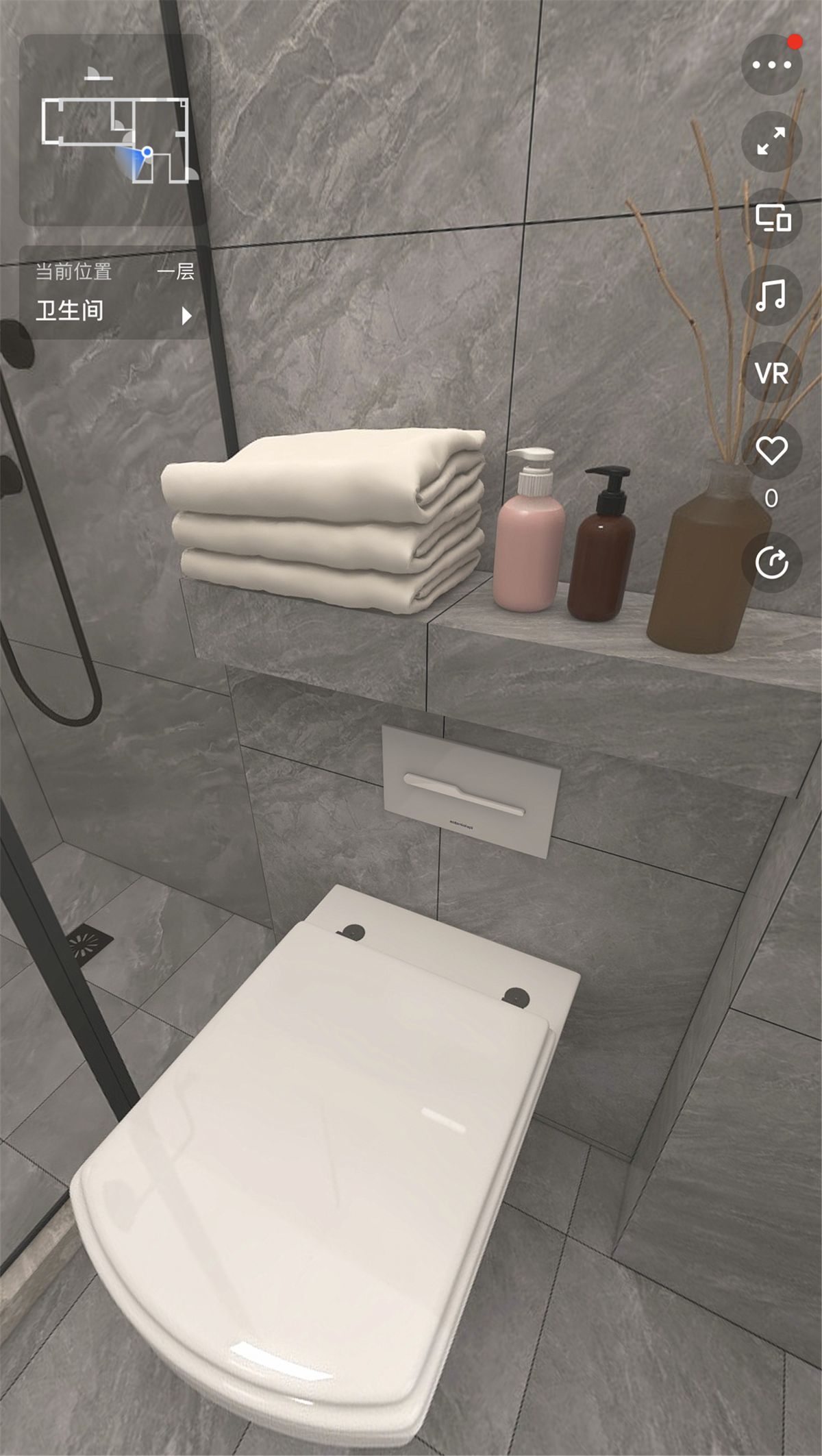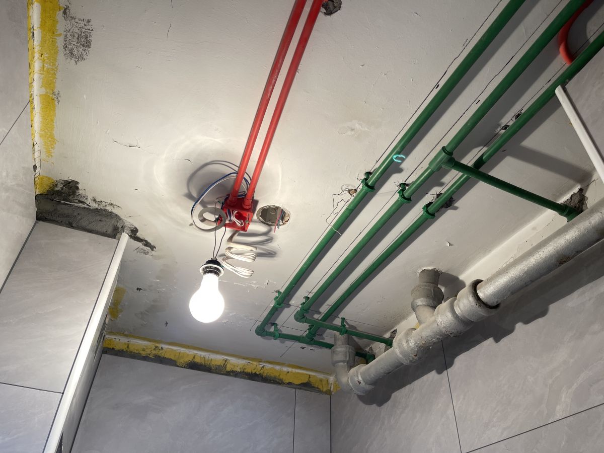 ↑ 衛生間的工藝,最重要的就是防水,梵客家裝對此有非常嚴格的驗收標準:滿刷1.8米高。如果隔壁空間緊挨牆的是收納櫃,衛生間防水會刷到頂。