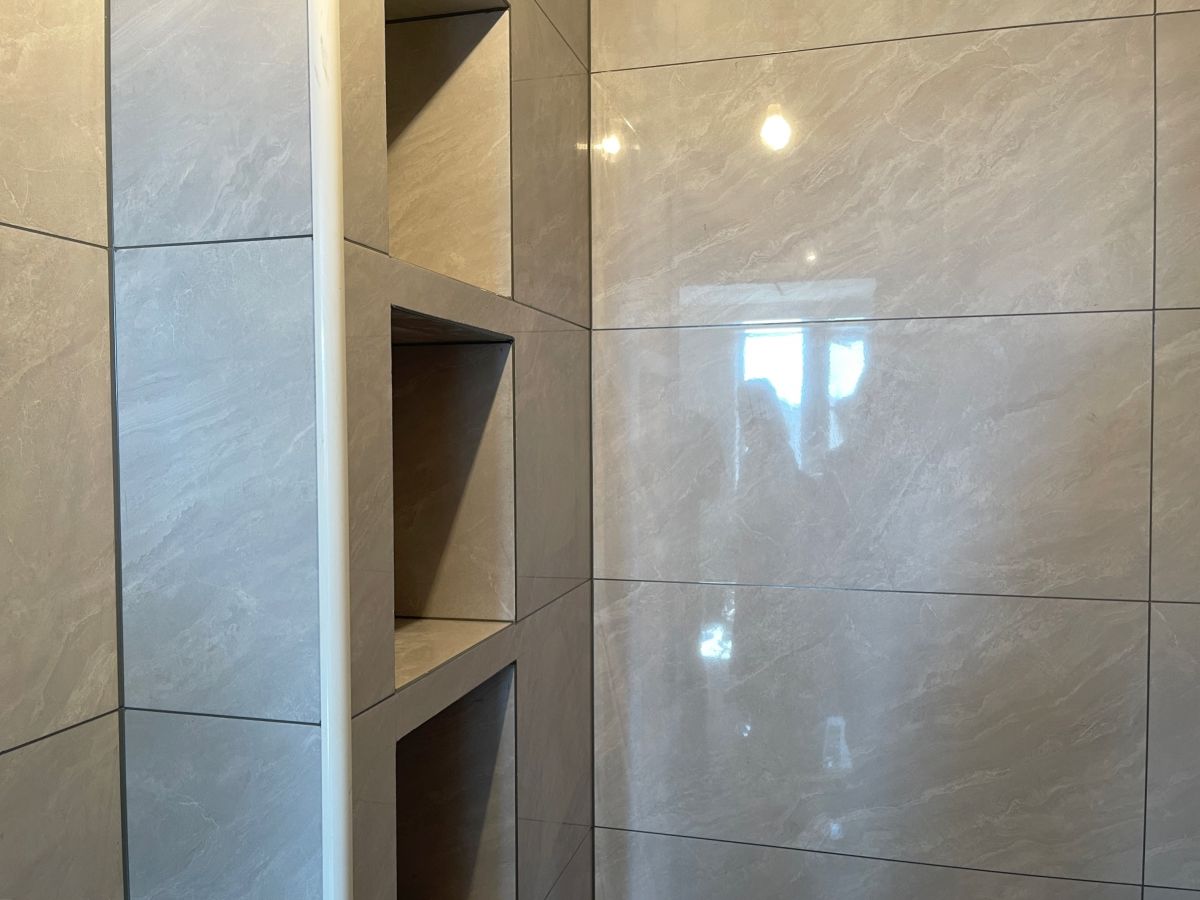 ↓ 壁龕,可以放洗浴用品。工藝上,碰角與圓弧形陽角的結合,視覺上更美觀,使用安全係數也更高,避免磕碰。