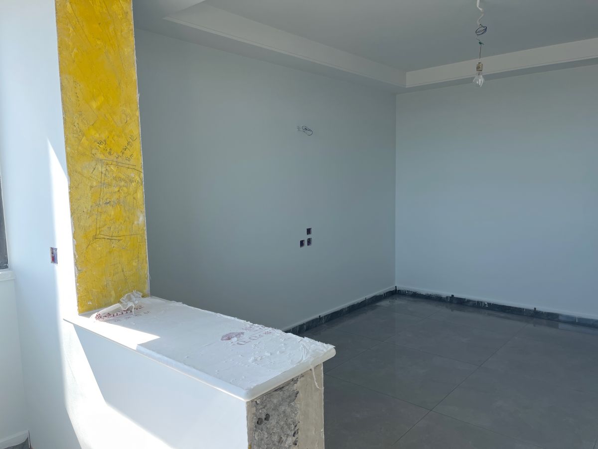 ↑ 廚房灶台區,幹淨整潔。牆麵采用400*800的瓷磚鋪貼,時尚大氣,工藝嚴絲合縫。目前在等櫥櫃進場,陸續還會有木門、潔具、燈具等進場安裝。