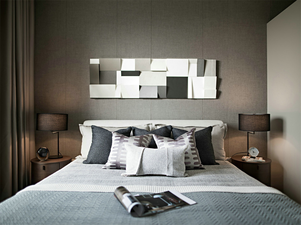 配色上主要選擇暖灰色和深褐色,體現莊重與優雅的格調,這兩種色彩濃厚成熟,可以增加空間的溫馨感和穩重感。