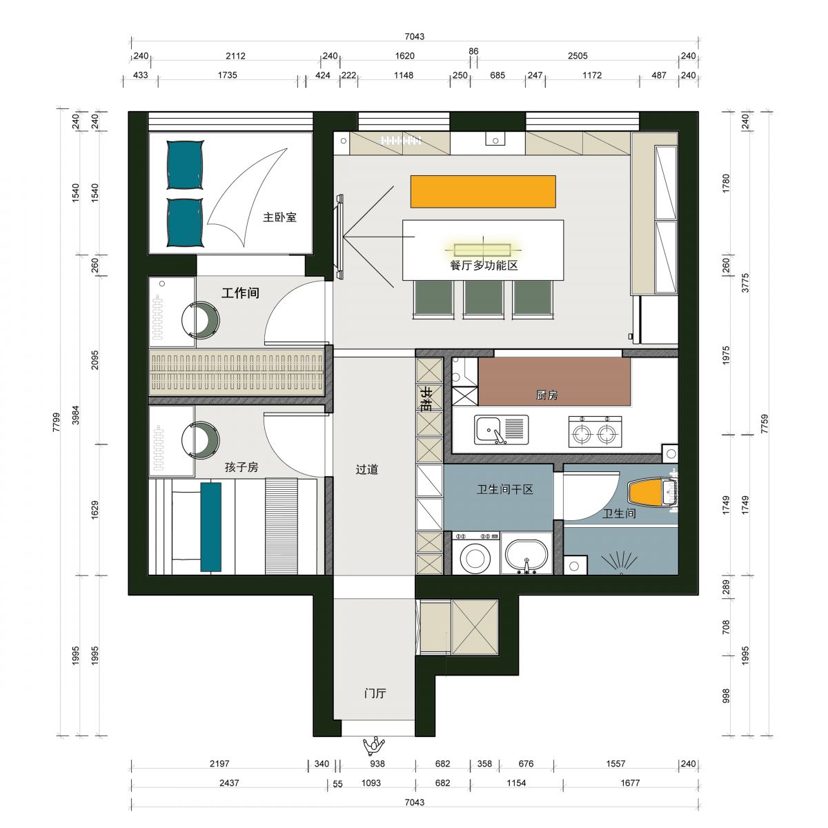 廚房,臥室 → 餐廳多功能區