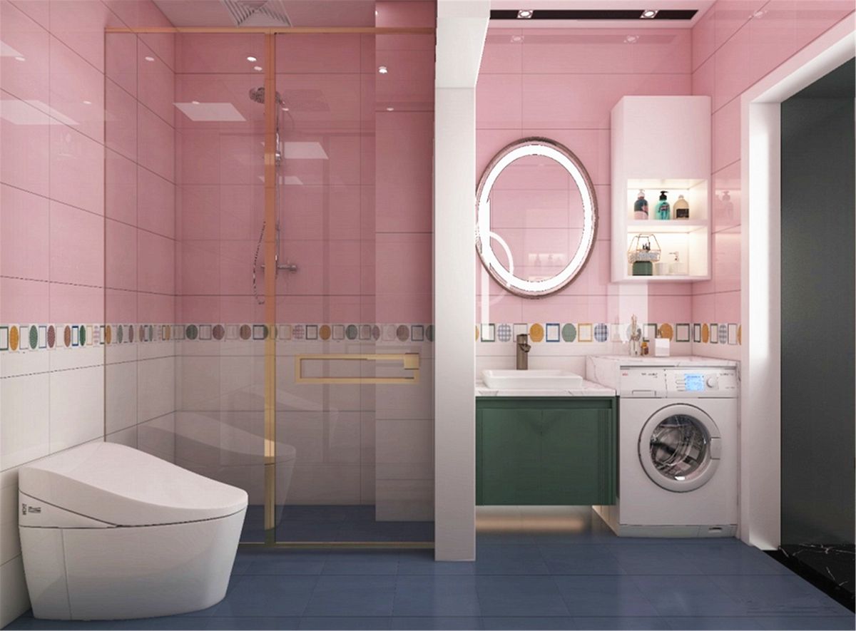 作zuo為wei私si密mi空kong間jian,業ye主zhu希xi望wang浴yu室shi的de設she計ji能neng大da膽dan一yi些xie。充chong滿man浪lang漫man氣qi息xi的de櫻ying花hua粉fen成cheng為wei主zhu打da色se,五wu彩cai腰yao線xian俏qiao皮pi絢xuan麗li,裝zhuang點dian著zhe整zheng個ge空kong間jian,帶dai來lai輕qing鬆song愉yu悅yue的de視shi覺jiao體ti驗yan。